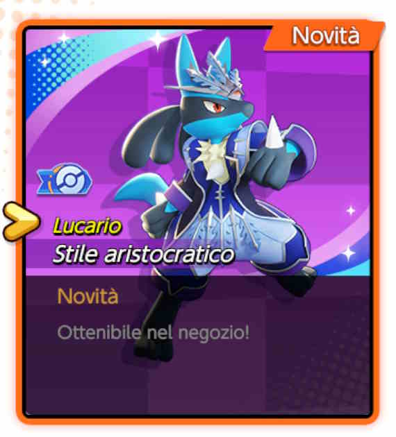 Qualche ora fa è stata resa disponibile la nuova skin Stile aristocratico per Lucario, acquistabile ora all’interno dello shop di Pokemon Unite.
