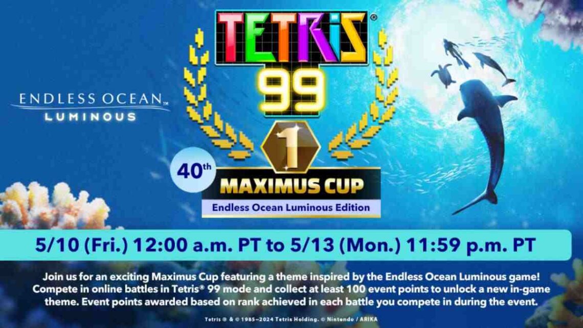 Tetris 99: pubblicato il trailer del 40° Grand Prix con il tema di Endless Ocean Luminous