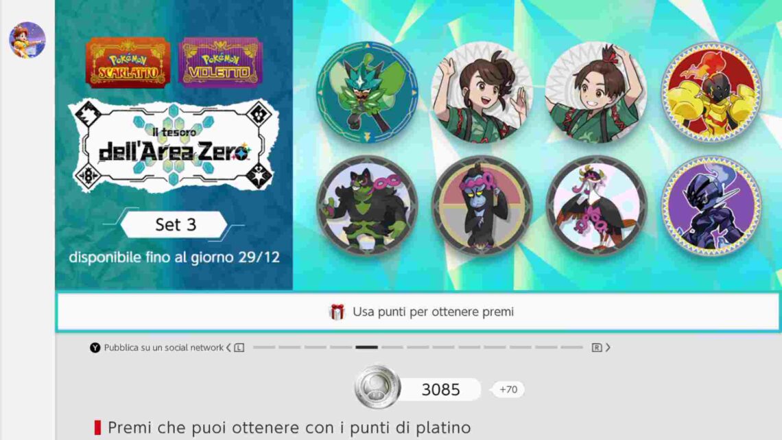A partire da questo momento sarà infatti possibile ottenere in premio delle nuove icone utenti, sfondi, personaggi e cornici riguardanti il Tesoro dell’Area Zero di Pokémon Scarlatto e Violetto.