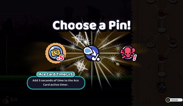 Now at the start of each Round you’ll be able to choose from one of three random Golf Pins to take with you on your quest to ascend to Golf Heaven. These magical new objects (some say are a gift from Golf God himself!?) can have a significant impact on how you approach every Hole!