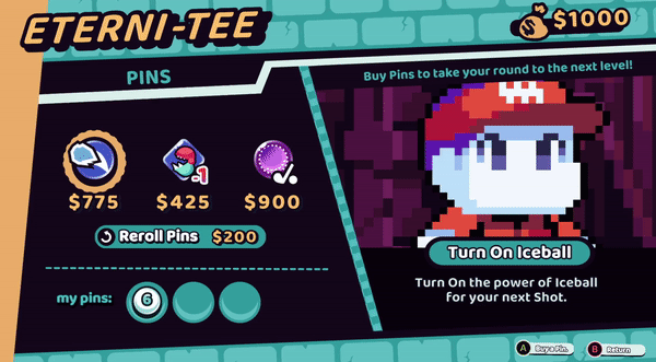 If you want more Golf Pin options (there’s A LOT!) more are now available at your local Eterni-Tee! The ghostly Caddies are waiting for you to check out the new PINS section! Don’t like their options? You can always pay to reroll and reveal three new choices! Try to combo some Pin powers together!