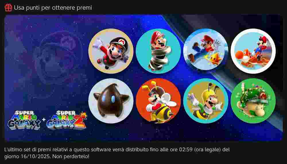 A partire da questo momento sarà infatti possibile ottenere in premio delle nuove icone utenti, sfondi, personaggi e cornici riguardanti l’universo di Super Mario Galaxy e Super Mario Galaxy 2.