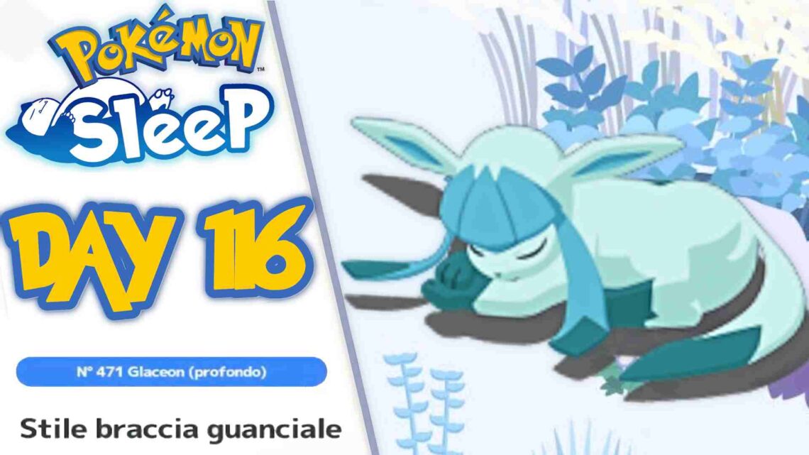 Pokémon Sleep (Day 116) Dormendo sulle braccia con Glaceon [Giorno 116]