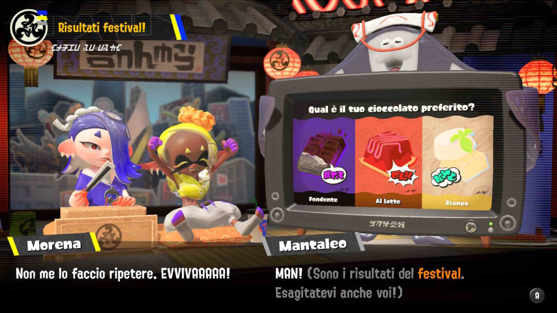Nintendo ha annunciato i risultati dello Splatfest, Qual è il tuo cioccolato preferito: Fondente, al Latte, Bianco, ora disponibili all’interno di Splatoon 3 su Nintendo Switch.