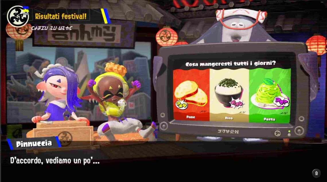 Nintendo ha annunciato i risultati dello Splatfest: Cosa mangeresti tutti i giorni? Pane, riso o Pasta, all’interno di Splatoon 3 su Nintendo Switch.