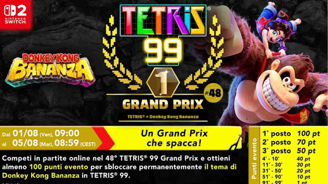 Dal 1° al 4 agosto 2025, il Grand Prix permetterà di ottenere un tema dedicato a Donkey Kong Bananza, ottenendo complessivamente un punteggio di 100 all’interno dell’evento.