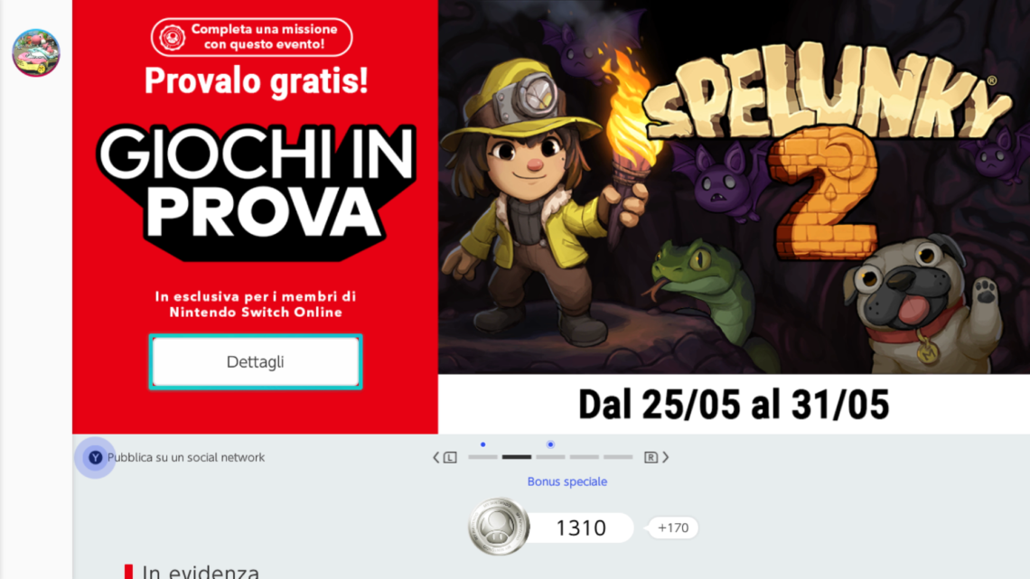 Spelunky 2 sarà infatti giocabile gratuitamente per i possessori di un abbonamento al Nintendo Switch Online, scaricabile dal 25 maggio al 31 maggio 2022.